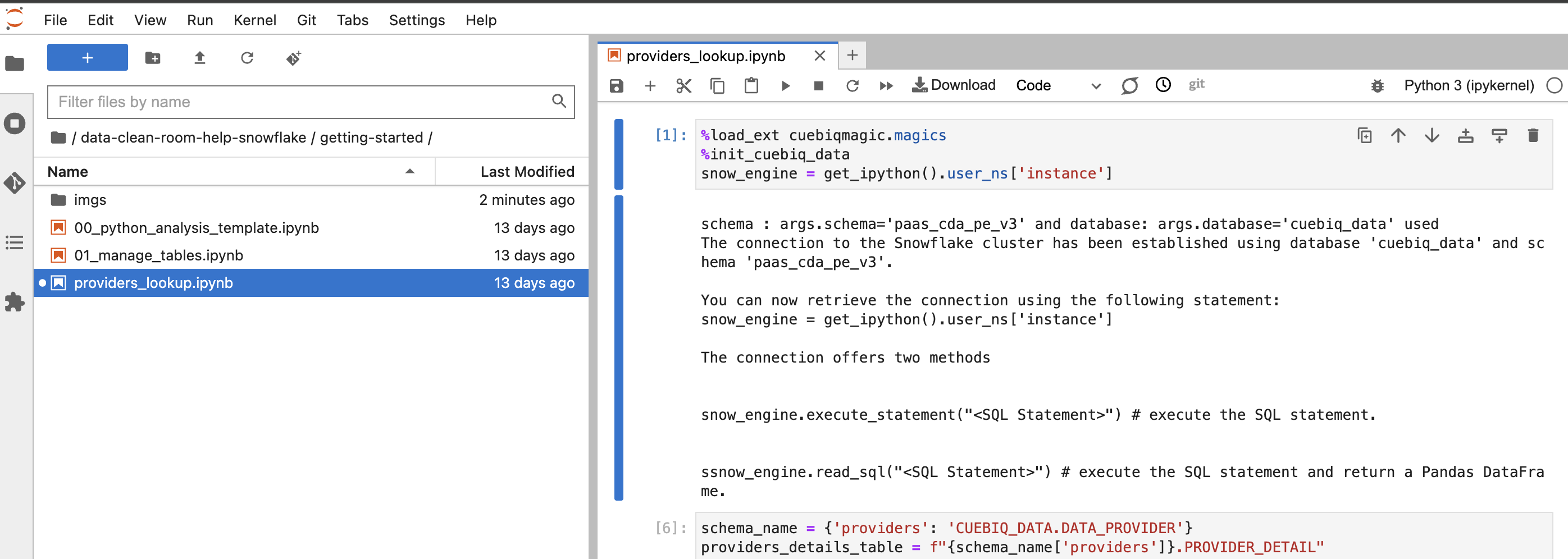 Additionally, a dedicated tutorial notebook is provided within the JupyterLab instance to illustrate the best practices when querying this table. You can find this notebook within the data-clean-room-help-snowflake/getting-started folder: